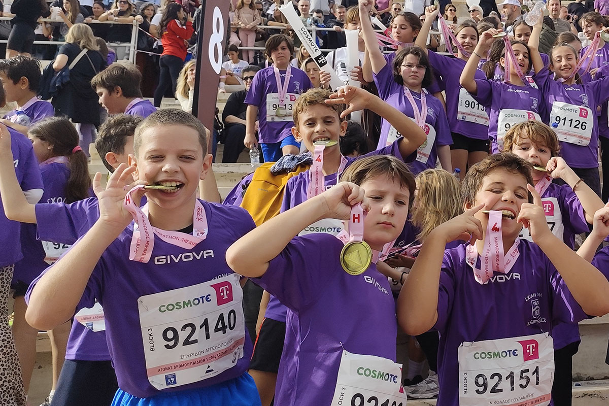 Στην ομάδα συμμετείχαμε 70 παιδιά από τη Δ' ως τη Στ' και με πολλή χαρά, ενθουσιασμό αλλά και λίγο άγχος τρέξαμε τον αγώνα των 1,2 χμ. Αφού ολοκληρώσαμε τον αγώνα με μια όμορφη αίσθηση ικανοποίησης για τον στόχο που πετύχαμε, μείναμε στο στάδιο για να υποδεχτούμε με ένα θερμό χειροκρότημα τον φετινό νικητή του Κλασικού Μαραθωνίου.